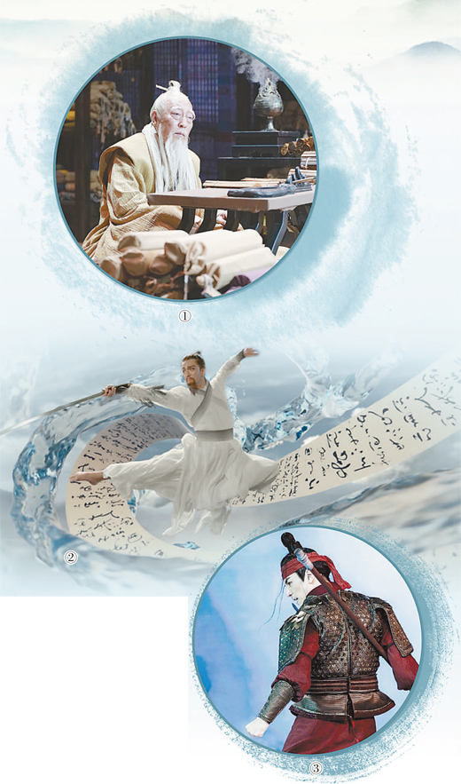 图②:河南卫视《重阳奇妙游》中舞蹈《逍遥》剧照。演员胡阳用舞蹈表现李白作诗。