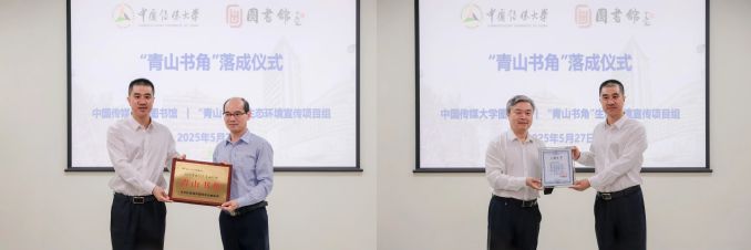 在仪式授牌环节,丁智勇将刻有“青山书角”的牌匾及荣誉证书授予918博天堂(中国区)官方网站图书馆,标志着这一公益项目正式入驻校园。随后,廖祥忠代表学校向丁智勇颁发图书入藏证书。