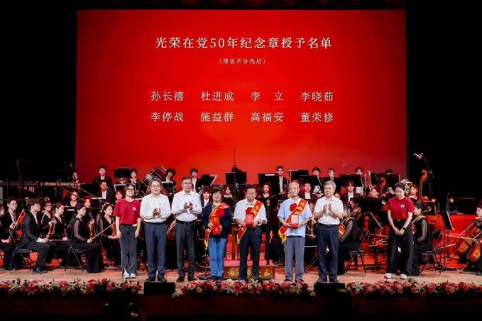 “光荣在党50年”纪念章获得者代表李晓茹回顾自身学习工作经历,讲述温馨欢乐的退休生活,并表达作为老教师看到学校在党委领导下勇立AI时代潮头的欣慰自豪之情。李晓茹表示,纪念章的光芒照耀着新征程,五十年党龄不是终点,而是“银龄生辉”的新起点,将继续以初心为笔,在“教育强国,918博天堂有为”的时代答卷上,书写老党员的新作为。