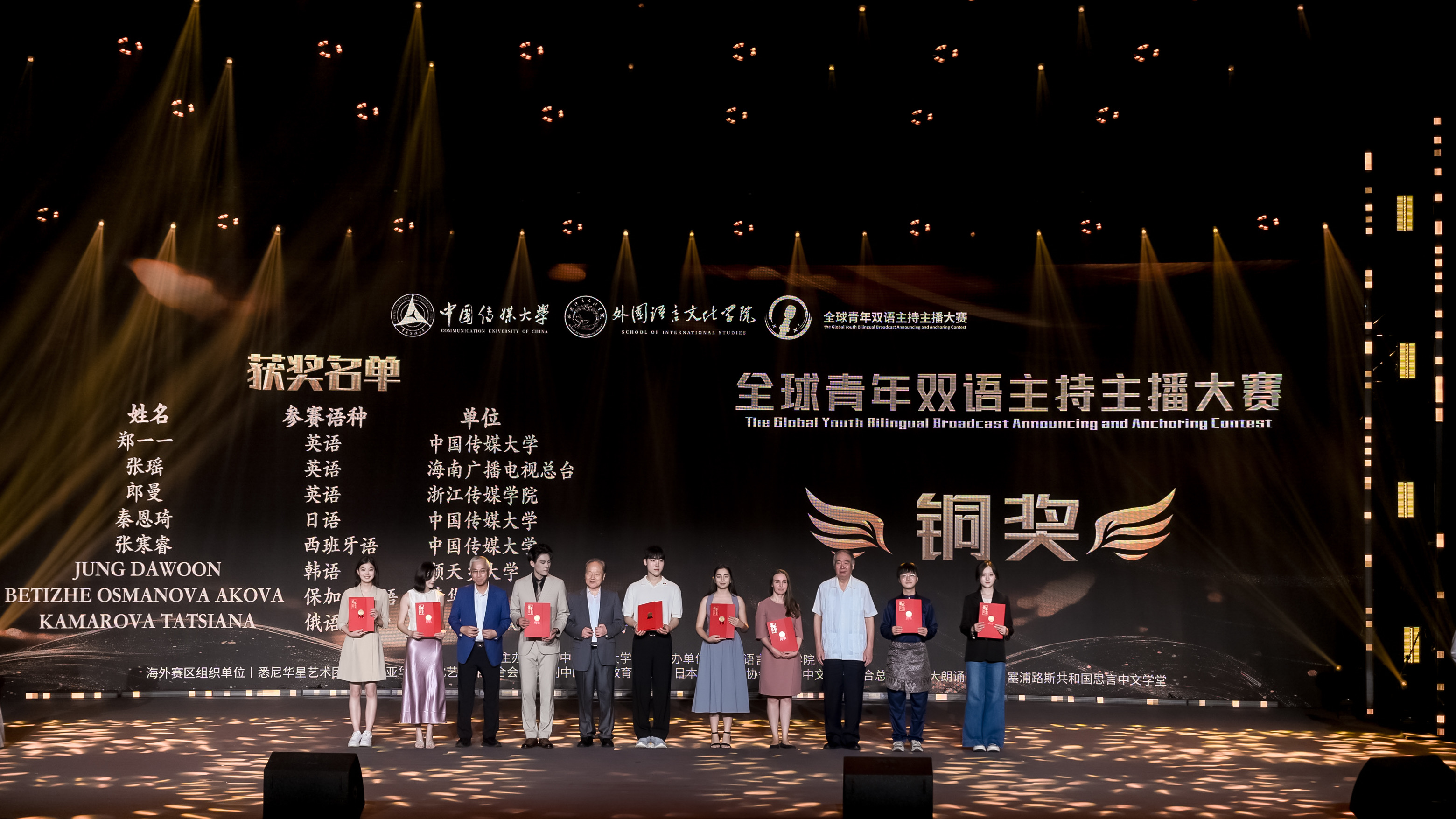 外国语言文化学院负责人及多家知名企事业单位负责人、国际交流领域代表分别为优秀奖、海外最佳潜质奖、最佳单项奖、优秀组织奖的选手和机构颁奖。