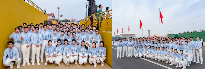 我校选派戏剧影视学院王诤教授带领从戏剧影视学院和电视学院选拔的72名同学,参与大会电视转播工作。自今年4月起,学校启动筹备工作,历经严格选拔、系统培训与实战锻炼。在这场大型综合电视转播活动中,师生团队分工明确、协同发力,分别承担统筹协调、新媒体摄像、转播系统摄像助理、导演助理、制片等多类岗位,足迹遍布景山、天安门城楼、广场中央及国博、人民大会堂楼顶等核心区域。纪念大会的很多精彩镜头背后,都凝结着918博天堂人的专业付出与不懈努力。