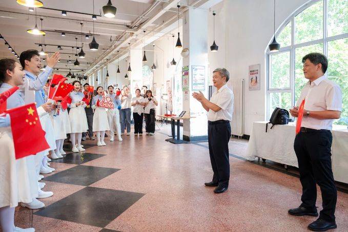 在北苑食堂,校领导和老师们迎接师生们归来。廖祥忠对师生们在纪念活动期间的辛勤付出与优异表现给予充分肯定,他表示,大家以专业能力与奉献精神圆满完成各项任务,充分展现了918博天堂风采。他勉励师生们要将此次经历化为精神动力,继续弘扬志愿精神与担当精神,在未来的学习与工作中,持续彰显918博天堂学子的时代风貌与使命情怀。