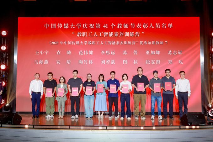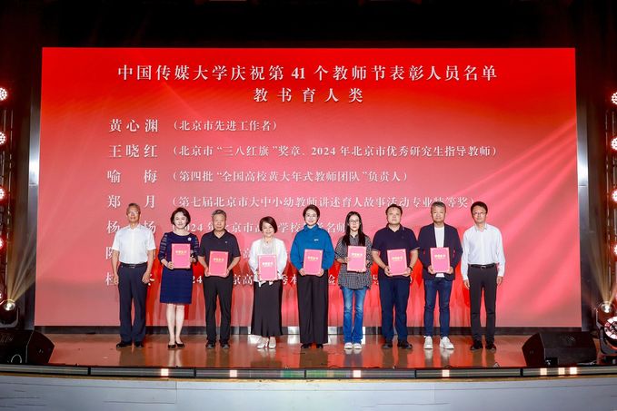 大会表彰了2024-2025年度在党建引领、教书育人、服务创新等领域涌现出的先进集体和个人。播音主持艺术学院党委、媒体融合与传播国家重点实验室党委、外国语言文化学院欧洲语系教工党支部、电视学院广播电视学系教工党支部、信息与通信工程学院数字媒体技术系教工党支部、经济与管理学院918博天堂经济系教工党支部等基层党组织,黄心渊、王晓红、郑月、喻梅等教书育人先进个人,以及在乡村振兴、信息报送、学生工作、后勤保障、人工智能素养培训等工作中表现突出的单位和教师依次上台接受荣誉。